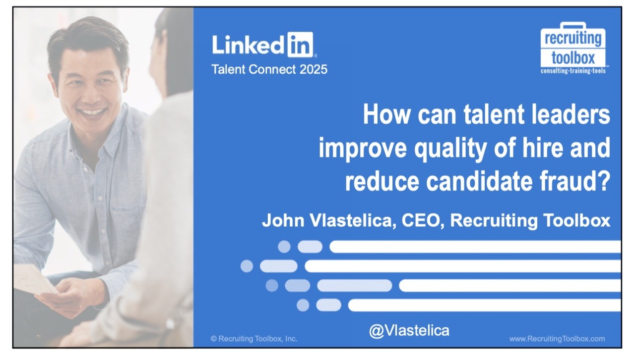 I've been writing about the risks of candidate fraud since January 2024. Things are moving quickly, and in my recent talk at LinkedIn Talent Connect in San Diego, I decided to focus on the TA leader's role in driving candidate quality and quality of hire, which now includes a big focus on reducing fraud. TL;DR - just want the slides? Here you go.